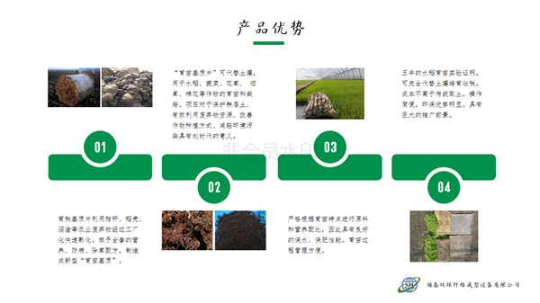 本產(chǎn)品針對(duì)水稻旱育苗大量挖取耕層土,耕層破壞嚴(yán)峻的現(xiàn)實(shí),利用秸稈、蘑菇菌糠、稻殼、沼渣等農(nóng)林廢棄物經(jīng)過工廠化快速熟化,賦予全套的營養(yǎng)、防病、除草配方,制造成新型的嶄新的“無土育苗基質(zhì)”。