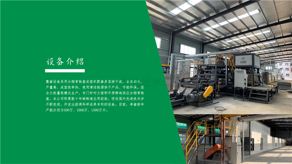 整套設(shè)備采用水稻育秧盤成型機(jī)配套多層烘干線,全自動(dòng)化、產(chǎn)量高、成型效率快、使用清潔能源烘干產(chǎn)品、節(jié)能環(huán)保。適合大批量規(guī)?;a(chǎn),專門針對(duì)大面積平原耕地供應(yīng)水稻育秧盤。本公司積累數(shù)十年械制造應(yīng)用經(jīng)驗(yàn),吸收國外先進(jìn)技術(shù)并不斷改進(jìn),目前,單臺(tái)按年產(chǎn)量分別為500萬及1000萬片。